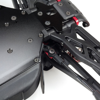 To develop the chassis, ARRMA® engineers started with the proven 4X4 3S platform. They stretched the track width by widening the suspension and drive shafts, and added a center brace along the length of the chassis for maximum durability (it can be removed in just four quick steps when it's time to perform maintenance). The molded 16mm Big Bore shocks include top-loading springs and molded-in shock rod ends to prevent spring loss.