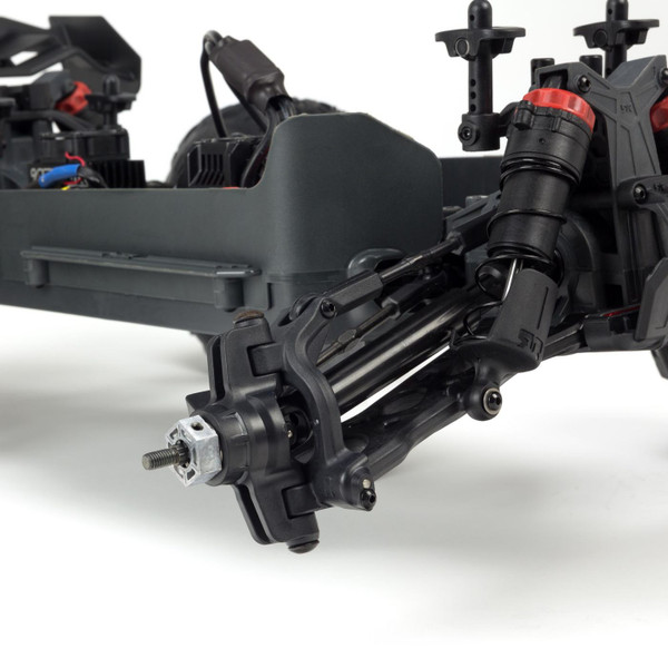 To develop the chassis, ARRMA® engineers started with the proven 4X4 3S platform. They stretched the track width by widening the suspension and drive shafts, and added a center brace along the length of the chassis for maximum durability (it can be removed in just four quick steps when it's time to perform maintenance). The molded 16mm Big Bore shocks include top-loading springs and molded-in shock rod ends to prevent spring loss.