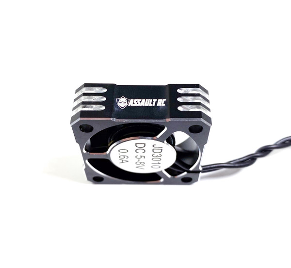 This is the Assault RC 30x30mm Black with Silver aluminum ball bearing fan with high velocity fins for maximum cooling. Great for off-road, on-road and oval.