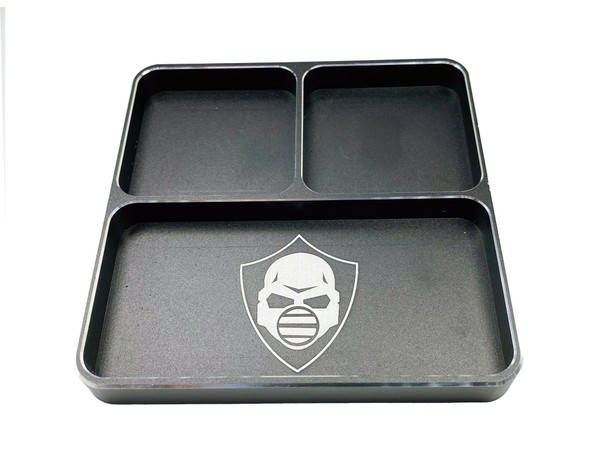 The Assault RC Aluminum Parts Tray is a great way to keep your builds sorted while keeping hardware and objects separated. It has three compartments that are deep enough not to allow for items to pop out and shallow enough to grab what you need when needed. The two smaller areas are 46mm x 46mm x 9.3mm deep.  The bigger area is 94mm x 46mm x 9.3mm deep and is laser etched with the iconic Assault RC Shield.  The very lightweight tray comes in Black and Red and will be sure to be a perfect table top item to use and show off while in your workshop or at an event.