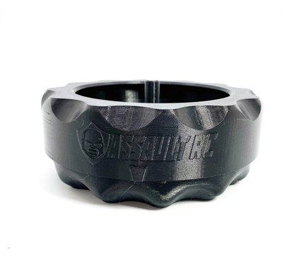 Welcome to the future of tire gluing tools. Assault RC product designer Roger Wendling outdid himself on this magical piece of tooling to help you reduce the mess and giving you the best shot at getting the needed amount of glue in between the bead of the tire and the rim. The Revolver Gluing Jig spins on a ball bearing turn table to eliminate the stress of the pulling the tire bead back evenly. By simply putting the top piece on the and twisting it a 1/4 turn you evenly open the bead up in a matter of seconds with equal amounts of pressure all the way around therefore when releasing the top after applying the glue you eliminate most of if not all of the risk of the tire lifting and warping giving uneven side walls. After twisting the top off you pull the tire out, put a band or tape around the bead for pressure and let it sit. We assure you that this is one of if not the easiest way to glue 1/8 buggy tires you have ever tried. We do recommend you clean and prep the bead surface of your tires and wheel prior to gluing, so far we haven't figured out how to make our jigs do that work for you. But the gluing has now become easier and more consistent than ever before.