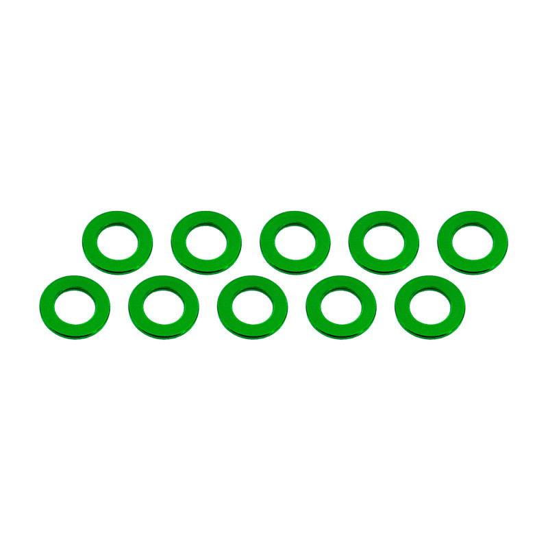 Beach RC says... This is a package of 10 anodized 3x6x0,5mm Aluminium Shim from Ultimate Racing. Lightweight and great looking, these washers are the perfect finishing touch for your R/C car. Available in six different anodized colors: blue, orange, black, purple, pink and red.