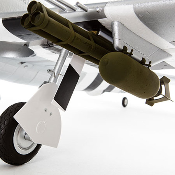 You also get an assortment of payloads you can attach to mounting stations under the wings and fuselage. These include 2 bombs, 2 rocket pods and a centerline drop tank. All snap into place and can be attached or removed in seconds, no tools or glue required.