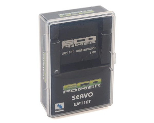 The EcoPower WP110T Cored Waterproof "High Torque" Metal Gear Servo is a great choice if you are looking for an affordable, waterproof RTR upgrade. The WP110T pumps out 280 oz-in of torque at 6.0V, making it an excellent option for 1/10 monster trucks, 2WD and 4WD 1/10 buggies, as well as 1/8 scale buggies, boats, and other surface applications that can benefit from a high torque, waterproof servo.