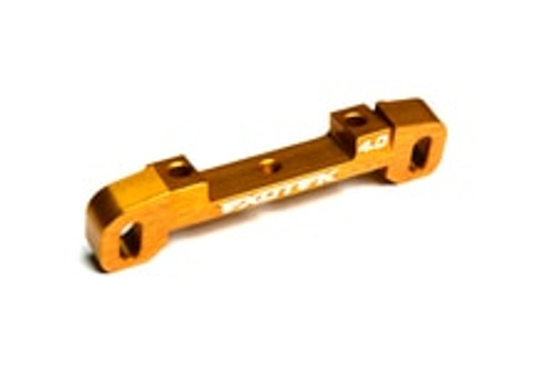 High strength 7075 alloy rear/rear suspension hanger for the DESC410 and DEX410. Beefed up center section for increased strength. Use these hangers to adjust toe at the inner hinge pin while still being able to adjust anti squat via the Durango hanger inserts. Designed to be used with TD330309 DEX410 HANGER INSERTS, not included.