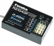 This is the Futaba R2104GF 2.4GHz FHSS 4-Channel High Voltage Receiver.