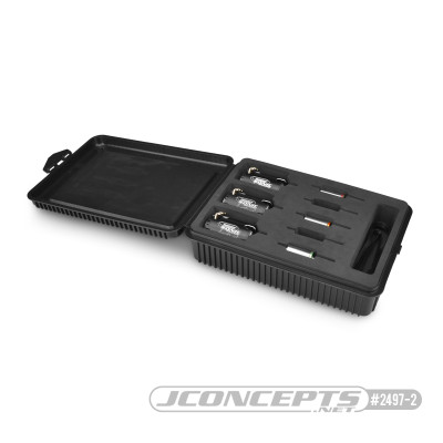 Being organized is the name of the game. The best organized, best prepared racers are typically the ones reaching for that top step of the podium. JConcepts has reached into their bag of tricks to help racer organization. The motor | rotor box includes plenty of space for assembled motors, individually spaced rotors and a pocket for miscellaneous motor tuning items.
