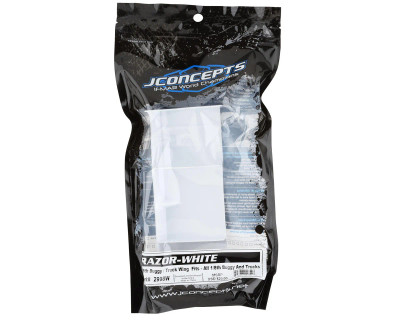 A very tall rear dam transitions twice to improve forward grip, helping your vehicle feel very comfortable in choppy and loose conditions. Underneath, the wing has a performance core with center fin and light-weight pocketing to reduce the overall weight. The Razor wing has pre-marked locations to allow the opening of the rear dam to allow more wind flow and air to escape during jumping. This allows racers to easily add holes to the back of the wing with hand trimming, giving you another tuning option. Lastly a grid is positioned on the bottom and molded into the design to allow the racer to mount the wing squarely and accurately to just about any 1/8th off-road vehicle. Developed to provide extreme performance while adding aggressive looks to your 1/8th vehicle, JConcepts has delivered yet again!