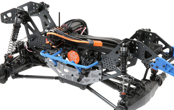 Completely designed from the ground up, the Losi® LMT 4WD Solid Axle Monster Truck is the first of its kind on the market combining all-out performance with incredible scale detail. Starting with the chassis, a twin vertical plate is designed to provide all of the performance adjustments needed to tune the truck for any situation. Whether you are a scale driver, a basher or a racer, the chassis is designed to accommodate multiple shock setups keeping you tracking straight, no matter the terrain. New multi-piece axle housings surround the 1/8th scale drivetrain. Additionally, the easy access center transmission comes stock with a center differential and allows for quick changes with the optional spool for that wheel standing action. For the true Monster truck experience, the axles also allow for optional 4-wheel steering and a new adjustable servo saver to keep the wheels pointed in the right direction. The Spektrum™ Firma™ Smart 130 Amp ESC and 3150kv 4-pole Brushless motor allow you to unlock blazing speeds. Drivers stay in control with a DX3™ transmitter and a Spektrum SR315 DSMR® 3-Channel Sport Receiver. A composite flip top cage adds scale realism and protection, as well as functionality so you can easily access your battery and electronics. Of course, the scale detail doesn't stop there with headers, drivers and LED lights and we've teamed up with Monster Jam for your choice of a Grave Digger or Son-Uva-Digger body. The LMT Monster Truck has just thrown down the gauntlet on solid axle monster trucks.