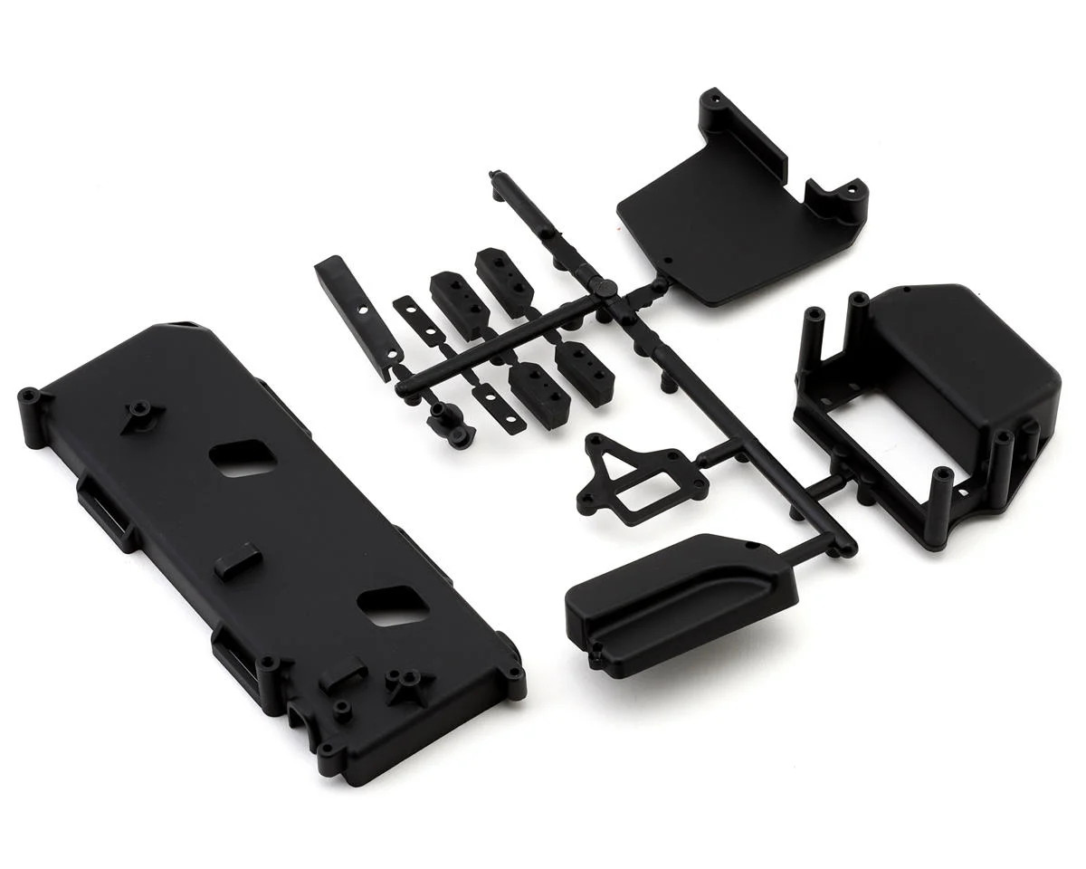 Mugen Seiki MBX8 ECO Radio Box and Battery Tray Set. This replacement set is intended for the MBX8 ECO platforms.
