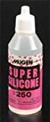 This is Super Silicone Shock Oil #250 by Mugen Used to fill shocks and add resistance FEATURES: Clear Shock Oil INCLUDES: (1) Bottle of Super Silicon Shock Oil #250 Weight REQUIRES: Nothing COMMENTS: The higher the number the thicker the oil is.