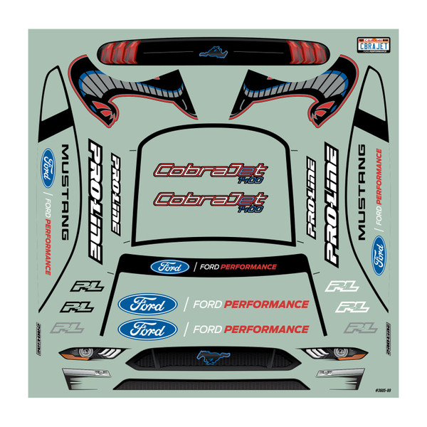 This is a 2021 Ford® Mustang Cobra Jet™ 1400 body for Mini No Prep Drag Racing. Pro-Line is proud to bring some modern American Muscle styling to the Losi® Mini No-Prep Drag Car platform with the release of the 2021 Ford® Mustang Cobra Jet body. What better way for Blue Oval Fans to deck out their drag car than with the legendary Ford® Mustang nameplate?