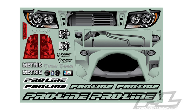 The Metric can be customized to represent an early 2000’s import truck often chosen as a project vehicle for full-size rock crawling or adventuring. The front hood is molded as a separate piece so you can open the hood to expose any detail you choose to add. The engine bay is empty, waiting for you to finish the build, and the sticker sheet represents that with exposed shock mounts, cross member and brake line detail. The front grill area is sunk in allowing for a highly detailed 3D printed front grill of your choice and the sticker sheet represents the exposed radiator detail just like the real thing. If you are ready for a unique, highly detailed, custom build that’s accessible for every skill level, then you need Pro-Line’s new Builder’s Series: Metric Body today!