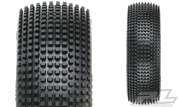 Beach RC says... This is a pair of Fugitive 2.2" 2wd Buggy Front Tires. Pro-Line is proud to bring the Fugitive tread to 1:10 size with the Fugitive 2.2" 2wd Front Tire! Ty Tessmann used the Fugitive to win the 1:8 World Championships in Italy and the same technology is now available to you in a smaller size! Pro-Line is putting the competition on the Run with the all-new Fugitive race tire. The Fugitive was developed to be the longest lasting race tire ever produced while still being quick and agile. Pro-Line's Fugitive tire sets the standard for wear and performance with a whole new design philosophy — small, tightly packed pins that can handle the abuse of being run on concrete. The Fugitive 2.2" tire comes standard with Pro-Line's long-lasting Closed Cell Foam insert. When combined with Pro-Line's incredible S3 Compound for high grip tracks, the Fugitive easily has the best performance to cost ratio of any Pro-Line tire making it perfect for many European style outdoor tracks. Choose Pro-Line's M Compounds for low grip or wet tracks. Be the first one outrunning the competition with the all-new Fugitive 2.2" Buggy 2wd Front Tire!