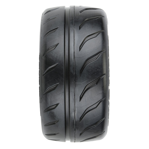 All the details from the full-size high-performance competition tire have been recreated to give your Infraction™ or Limitless™ the ultimate in scale looks, street performance, and long-lasting wear. The Proxes R888R is known for extreme grip, cornering, and braking stability in the full-scale world on track, and it's no different in the RC world as these tires will transform the handling of your car or truck. The large tread blocks on the outside tread maximize lateral grip while the wide center rib improves directional stability for all-out speed runs.
