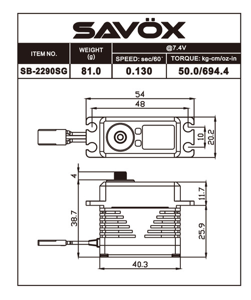 The powerful "Monster" performance series from Savox utilize an all aluminum case, unique brushless motor and controller technology to boost power up to 35% over previous generation servos.