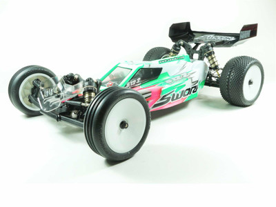 The SWORKz S12-2D Evolution LIMITED (Dirt Edition) is an evolution from the successful S12-2D platform. The new geometry of the car provides optimized corner speeds and easy handling on carpet and very high grip tracks. The S12-2D EVO LIMITED features a new carpet version gear box system on a T7075 hard anodized and lightened aluminum chassis. It has a layout that allows up to 6 different battery positions. The flex of the chassis can be changed by adjusting the sideguards. The S12-2D EVO LIMITED comes with SWORKz brand new designed 1/10 Pro-Shock System (Long version). The shocks come with new Emulsion Precision Plastic Shock Caps, Shock Pistons with Seal Parts. The kit comes standard with a 4mm carbon Dirt version front shock tower and newly designed front C-Hubs. The Teflon coated shock shafts provides smooth shock reactions. Black Line springs which are newly designed with rotation fixed spring holders comes standard in the SWORKz S12-2D EVO LIMITED kit. A brand new 5.5mm linkage ball stud system are included in the S12-2D EVO LIMITED kit. Adjustable Ackermann plate and Carbon steering plates are included too. The S12-2D EVO LIMITED has new angled lower arms that provide a lower Shock position which leads to a lower center of gravity. The kit is equipped with a quick release gear differential system, which can be mounted in 3 different positions. The rear lower arms are angled and the rear shock tower (carpet version) has got different height positions. The weight of the gearbox is optimized to a perfect balance between size and strength. The rear shock tower (carpet version) of the S12-2D EVO LIMITED is made of carbon. The wing mount holder's height and angle can be adjusted. The rear width of the S12-2D EVO LIMITED can be changed with the new Synthesis Rear Hub System and rear CVD modularity. The SWORKz S12-2D EVO LIMITED has a front sway bar and a completely new rear sway bar holder system. The 2-Pad Slipper of the SWORKz S12-2D EVO LIMITED comes with hard anodized plates, high temperature resistant slipper pads and a spur gear protection with a engraved SWORKz logo. The S12-2D EVO LIMITED body shell has good aerodynamics. The SWORKz development team focused on using materials, corresponding to the highest quality standards, when designing the car. You will find only 100% SWORKz quality in the S12-2D EVO LIMITED kit.