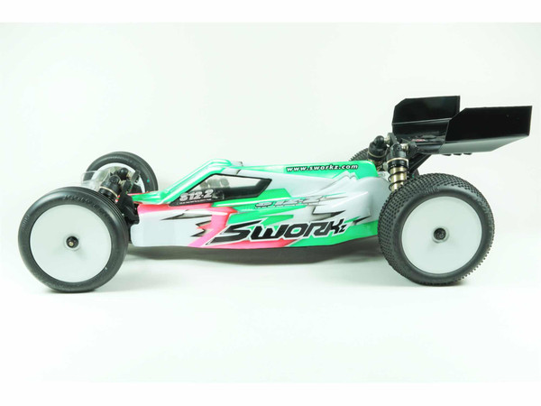 The SWORKz S12-2D Evolution LIMITED (Dirt Edition) is an evolution from the successful S12-2D platform. The new geometry of the car provides optimized corner speeds and easy handling on carpet and very high grip tracks. The S12-2D EVO LIMITED features a new carpet version gear box system on a T7075 hard anodized and lightened aluminum chassis. It has a layout that allows up to 6 different battery positions. The flex of the chassis can be changed by adjusting the sideguards. The S12-2D EVO LIMITED comes with SWORKz brand new designed 1/10 Pro-Shock System (Long version). The shocks come with new Emulsion Precision Plastic Shock Caps, Shock Pistons with Seal Parts. The kit comes standard with a 4mm carbon Dirt version front shock tower and newly designed front C-Hubs. The Teflon coated shock shafts provides smooth shock reactions. Black Line springs which are newly designed with rotation fixed spring holders comes standard in the SWORKz S12-2D EVO LIMITED kit. A brand new 5.5mm linkage ball stud system are included in the S12-2D EVO LIMITED kit. Adjustable Ackermann plate and Carbon steering plates are included too. The S12-2D EVO LIMITED has new angled lower arms that provide a lower Shock position which leads to a lower center of gravity. The kit is equipped with a quick release gear differential system, which can be mounted in 3 different positions. The rear lower arms are angled and the rear shock tower (carpet version) has got different height positions. The weight of the gearbox is optimized to a perfect balance between size and strength. The rear shock tower (carpet version) of the S12-2D EVO LIMITED is made of carbon. The wing mount holder's height and angle can be adjusted. The rear width of the S12-2D EVO LIMITED can be changed with the new Synthesis Rear Hub System and rear CVD modularity. The SWORKz S12-2D EVO LIMITED has a front sway bar and a completely new rear sway bar holder system. The 2-Pad Slipper of the SWORKz S12-2D EVO LIMITED comes with hard anodized plates, high temperature resistant slipper pads and a spur gear protection with a engraved SWORKz logo. The S12-2D EVO LIMITED body shell has good aerodynamics. The SWORKz development team focused on using materials, corresponding to the highest quality standards, when designing the car. You will find only 100% SWORKz quality in the S12-2D EVO LIMITED kit.
