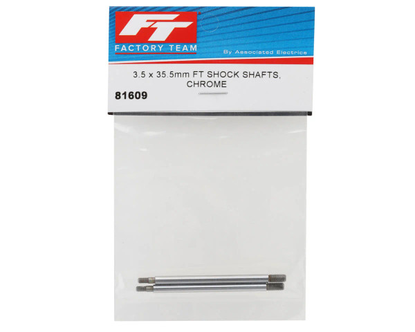 Team Associated RC8T4 and RC8B4 Factory Team (3.5x35.5mm) Front Chrome Shock Shafts. These optional shock shafts are intended for the RC8T4 and RC8B4 platforms to provide smoother and friction-free damping action. Package includes two chrome front shock shafts.