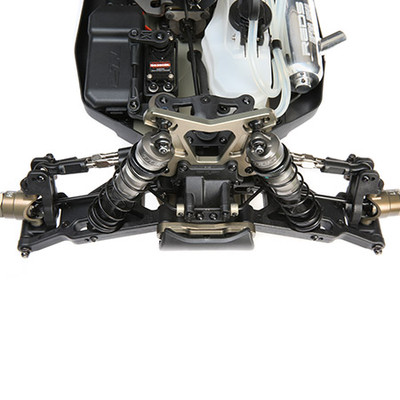 Long front and rear arms provide great bump handling and stability. The arms are stronger using a truss-style base as well as upper stiffener plates to adjust flex for full tuning abilities. Bushings are used for the inner hinge pin area to provide a worry-free, smooth function at all times.