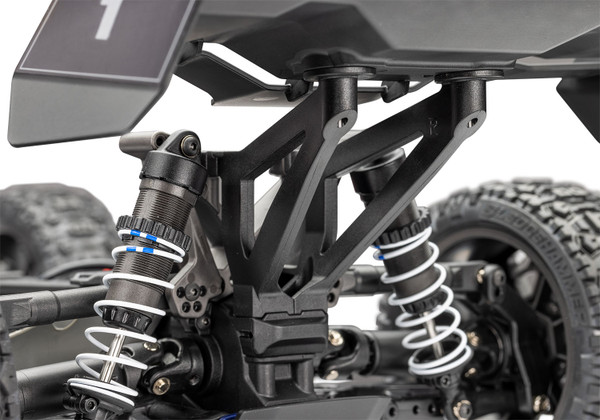 Jato 4X4 VXL sits low and wide, concentrating its weight below the driveshafts for razor-sharp handling and perfect weight distribution. Aluminum XX-long GTR shocks in the front and rear maximize traction by keeping Jato 4X4 VXL’s ultra-soft Response Pro tires in constant contact with the ground. Add the optional sway bar kit (sold separately) for flat cornering and game-changing track performance.
