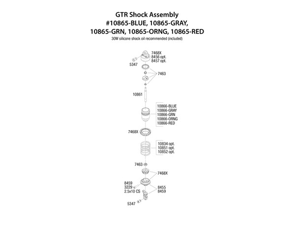 Give your mini the ultimate suspension upgrade with aluminum GTR shocks. The brilliantly-anodized aluminum shock bodies are coated with PTFE for the slickest damping action available. Their large bores hold more oil than standard shocks for consistent dampening over the roughest terrain. Slick titanium-nitride coated shafts resist scuffing, increase durability, and eliminate "stiction." X-rings keep oil in and dirt out for smooth suspension action. Spring preload and ride height changes are as simple as turning the threaded spring collars. The lower spring retainers even feature a locking screw to prevent annoying pop-off in the middle of your run. Shocks come assembled and silicone oil is included in the package. Sold as a complete set of four.