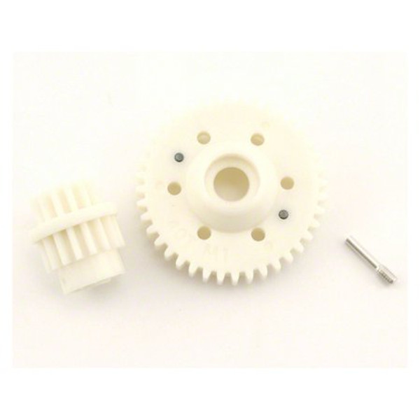 One 40T 2nd speed gear One 13T/16T input gear One screw pin REQUIRES: Installation into Traxxas Revo.