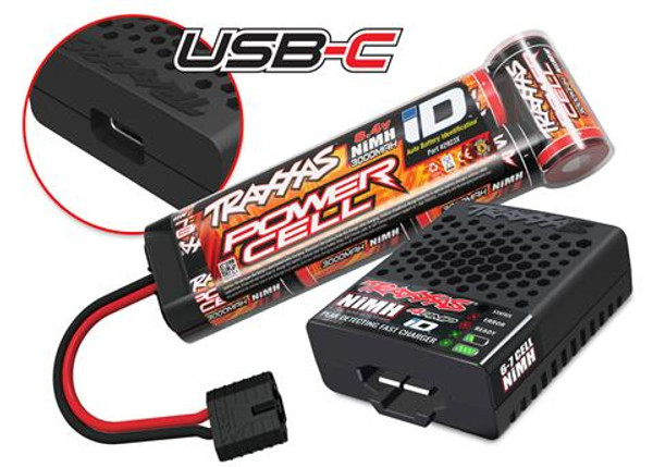 Rustler includes a powerful 8.4 volt 3000 mAh Traxxas Power Cell rechargeable NiMH battery pack to reach its 35+ mph top speed. Fast 4-amp charging is available virtually anywhere thanks to the included 45+ watt USB-C battery charger with iD® technology. Power adapter and cable sold separately. For maximum charge rate use Traxxas 2912 45-watt power adapter and 2916 100-watt power cable. The Traxxas iD system is the easiest and safest way to charge your Traxxas batteries. The charger automatically recognizes the iD battery and optimizes the charge settings as soon as you plug it in. There’s no guesswork involved, just fast, reliable charging every time.