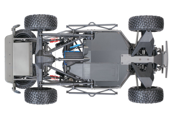 The Traxxas Unlimited Desert Racer is engineered on an authentic, true to scale 4-wheel drive desert race truck chassis. The 4-link solid rear axle design provides huge suspension travel with authentic driving dynamics. From the cantilever sway bars to the 8 GTR shocks, Traxxas has accurately reproduced a true unlimited desert race chassis in both form and function.