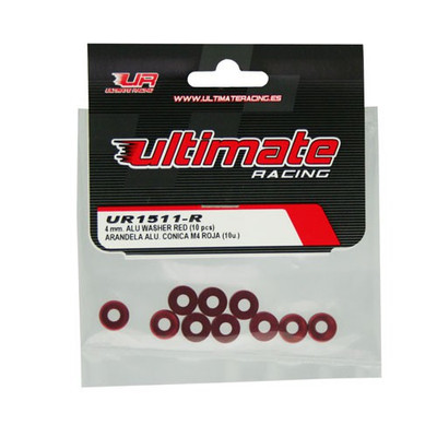 UR offers a package of ten anodized Aluminium Cone Washers, and are intended for use with any R/C vehicle that uses 4mm washers. Lightweight and great looking, these washers are the perfect finishing touch for your R/C car. These washers are also an excellent option to reduce weight in any application that requires 4mm aluminium washers. Available in five different anodized colors: blue, gold, purple, pink and red.