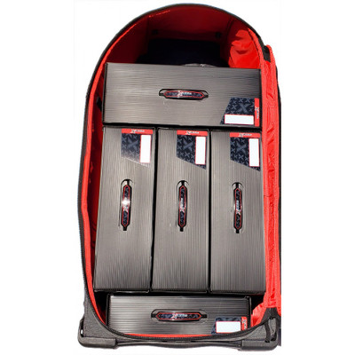 The two larger boxes (15x9x7.5in) give you the most room to organize and place your RC equipment and stack vertically. Utilizing the full width of the bag just at the taper, and the depth up to the zipper line (we didn't want to waste any usable space for you). There is still room above the zipper line to store your smaller/softer items between the boxes and the OGIO® bag cover.